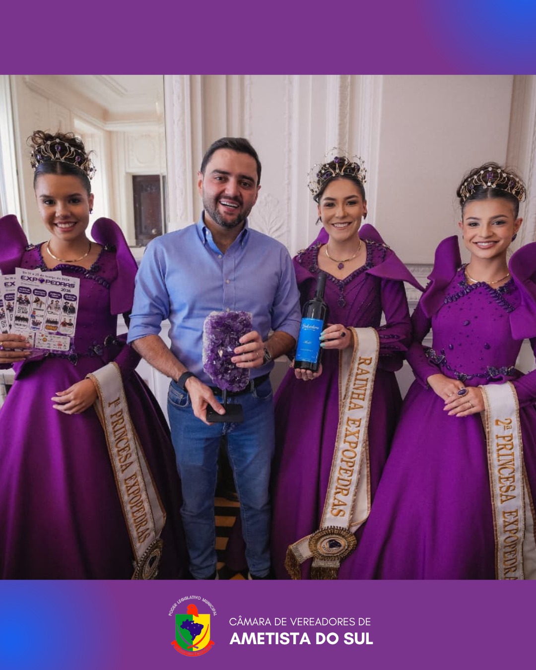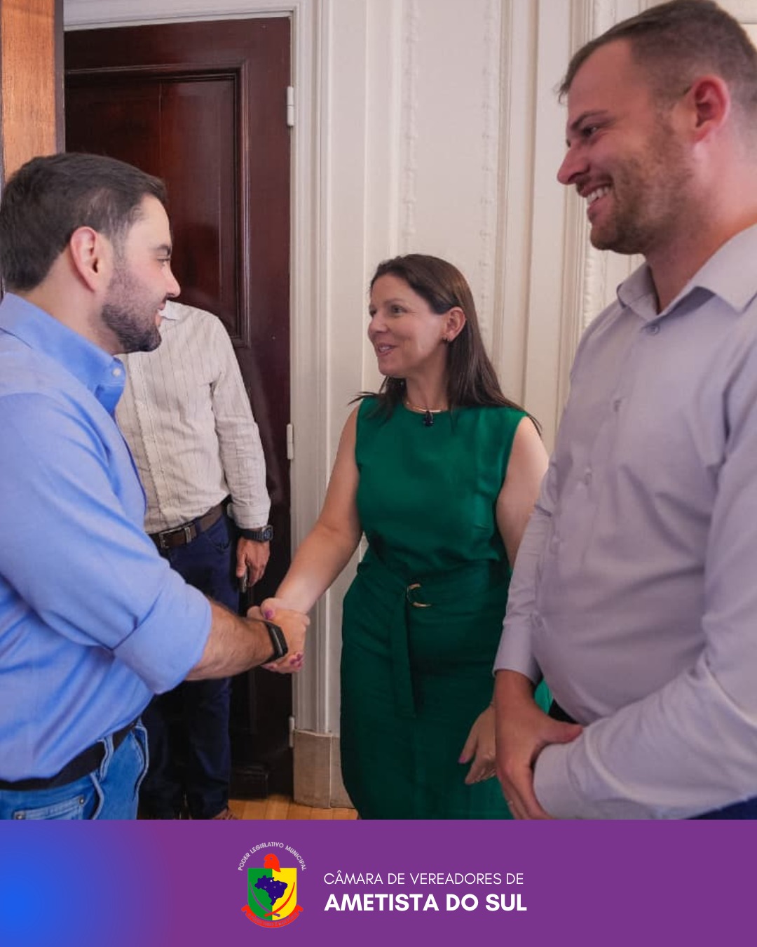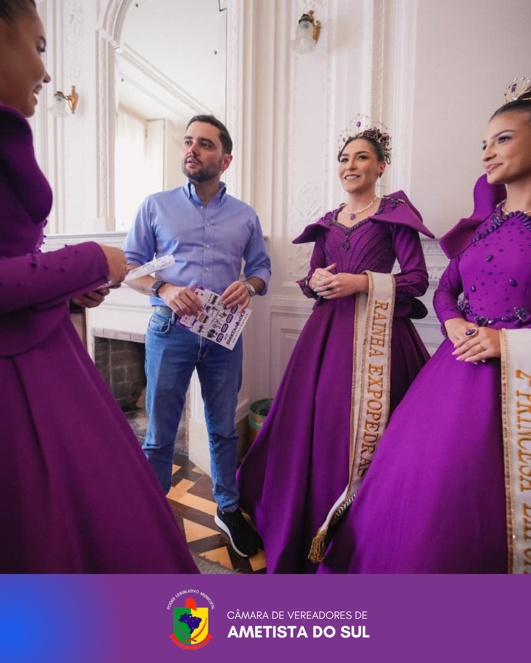 Nesta segunda-feira, 02 de março de 2026, a vereadora Maurícia Schmidt Gheno representou o Poder Legislativo de Ametista do Sul em agenda institucional na Capital do Estado para a entrega do convite oficial da Expopedras.