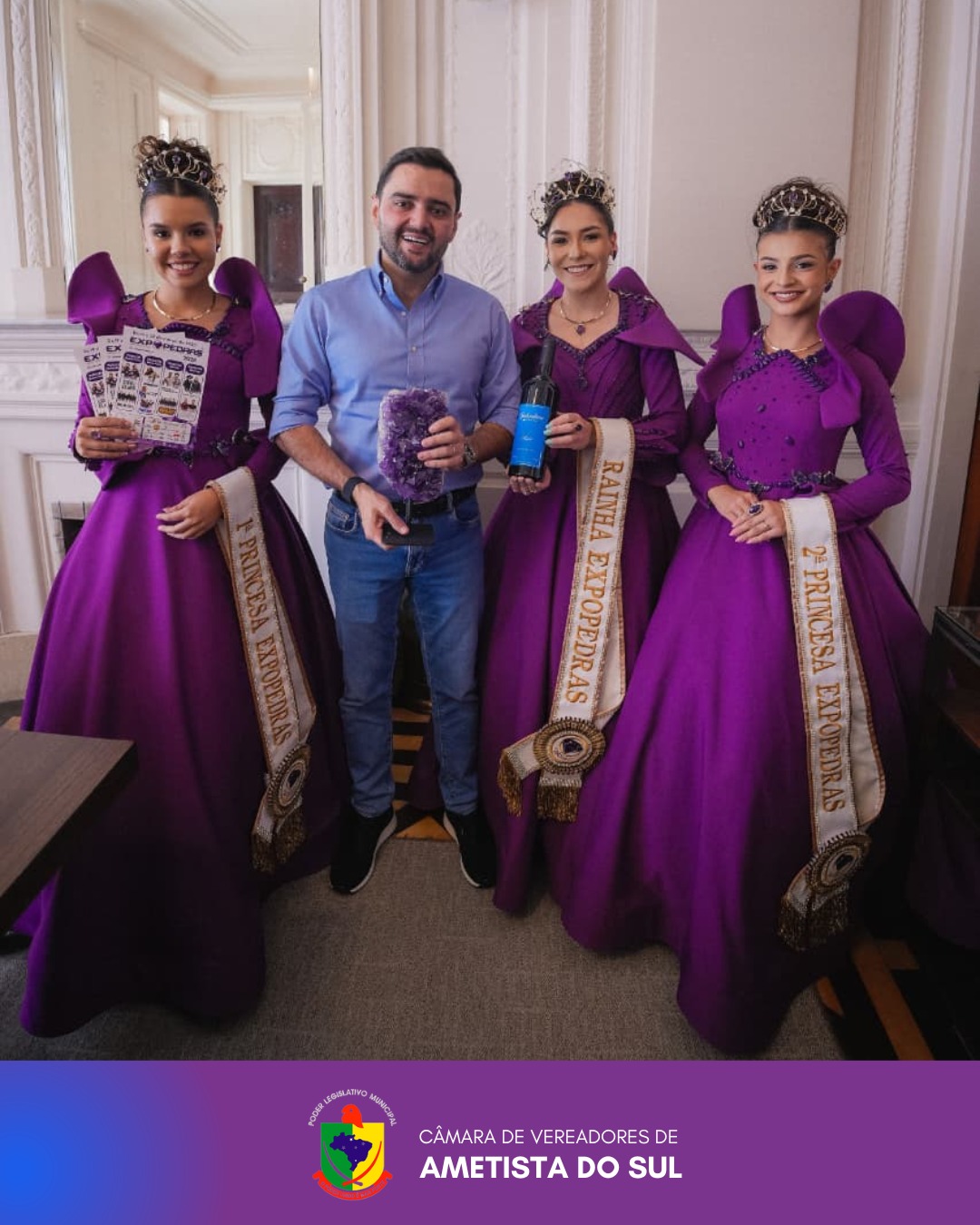 Nesta segunda-feira, 02 de março de 2026, a vereadora Maurícia Schmidt Gheno representou o Poder Legislativo de Ametista do Sul em agenda institucional na Capital do Estado para a entrega do convite oficial da Expopedras.